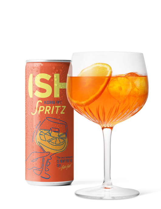 Spritz italien Une amertume équilibrée et des agrumes frais, voilà ce qui fait un bon Spritz italien. C'est également ce que vous pouvez attendre du Cocktail Spritz ISH sans alcool 0,5%....