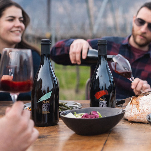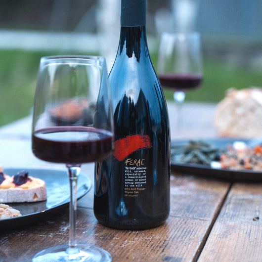 Feral N° 3 est riche et corsé, avec une forte présence d'acidité et de tanins. Le rouge vif provient de la betterave fermentée et du bleuet sauvage, rehaussé de poivre noir et de thym.